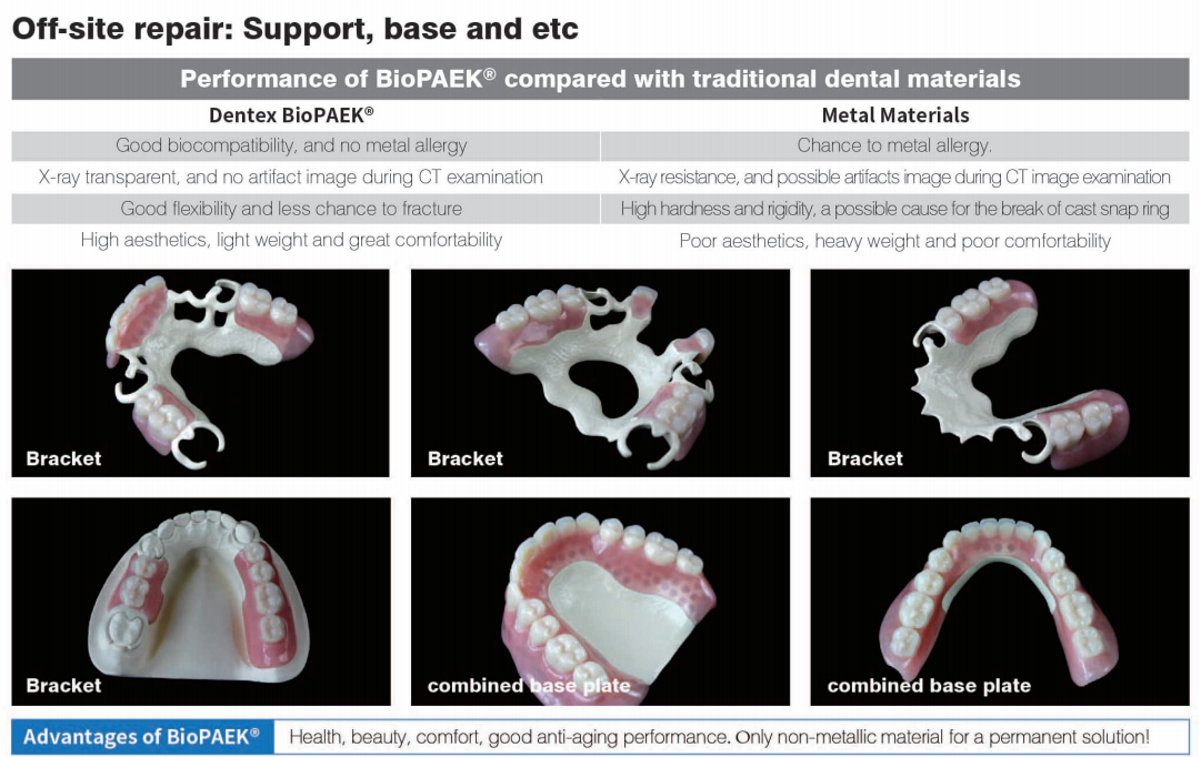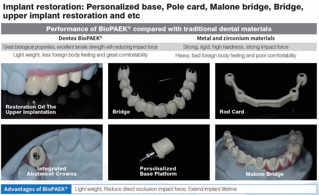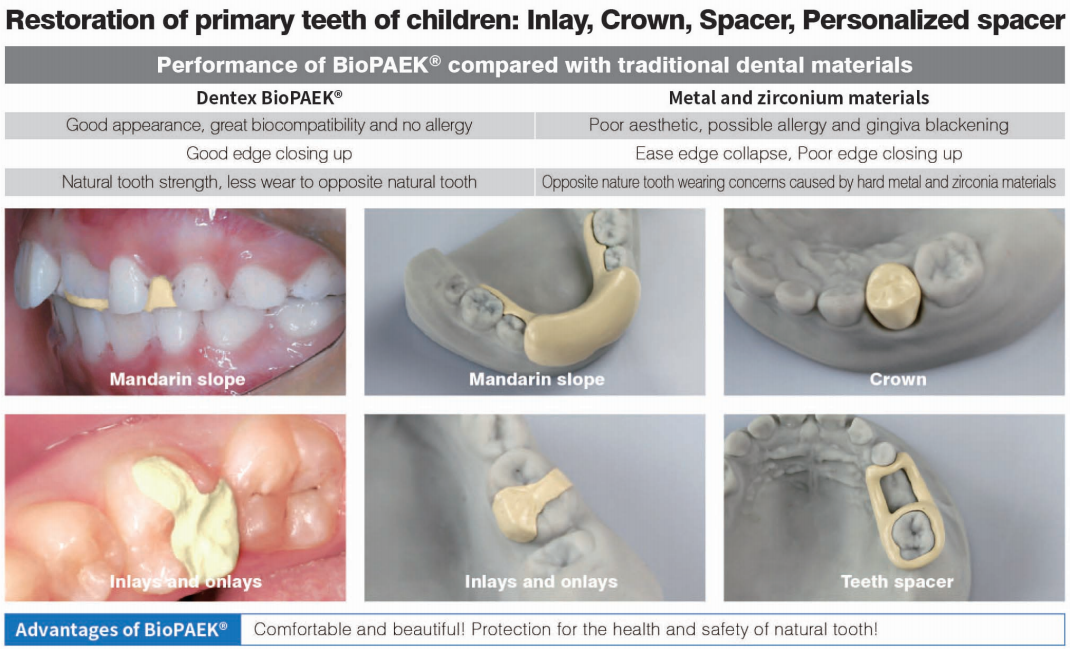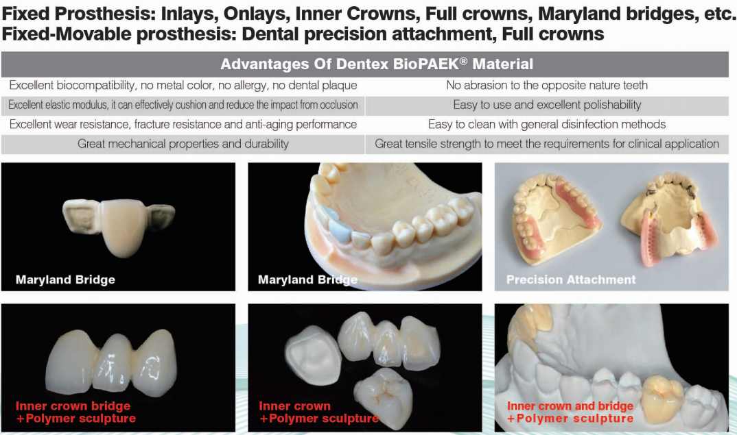 Dentex BioPAEK Dental Polyetheretherkelone crown and bridge material is the first product with CFDA registraion certificate for dental Polyetheretherketone product in CAD/CAM process.