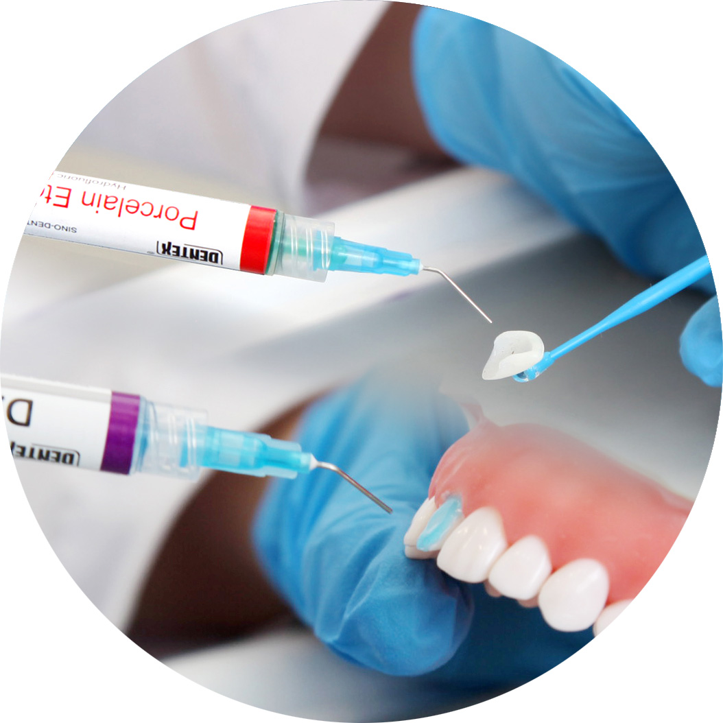 Used for acid etching of porcelain crown, porcelain veneer, porcelain inlay, etc., to increase the bonding area of porcelain surface;