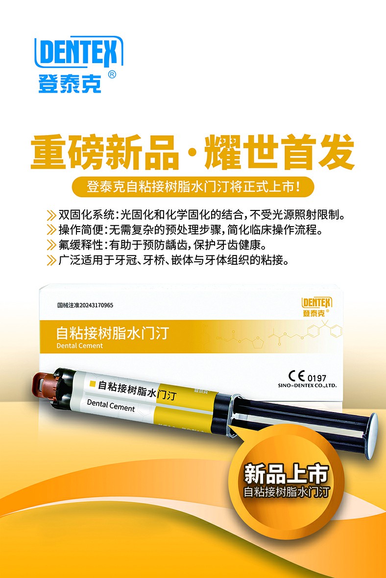 ▶关于新品:自粘接树脂水门汀已面市,后续我们将陆续推出产品介绍、操作指南及应用案例分享,敬请关注。